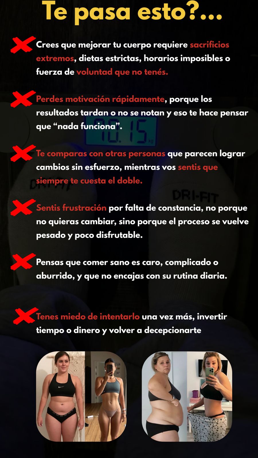 ✨No. El objetivo es que aprendas a comer rico mientras mejorás tu cuerpo, sin culpas ni prohibiciones extremas.
